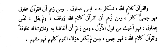 Therefore it is uncreated. Who maintains that the Koran is created is an